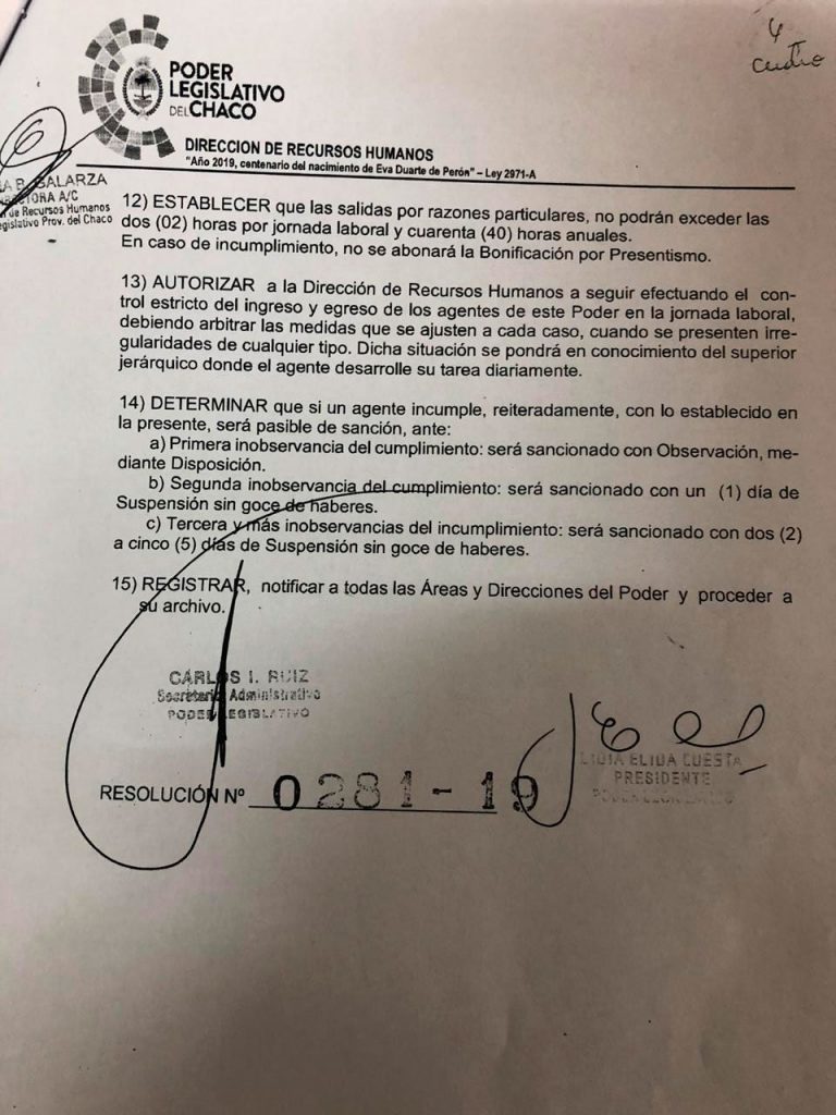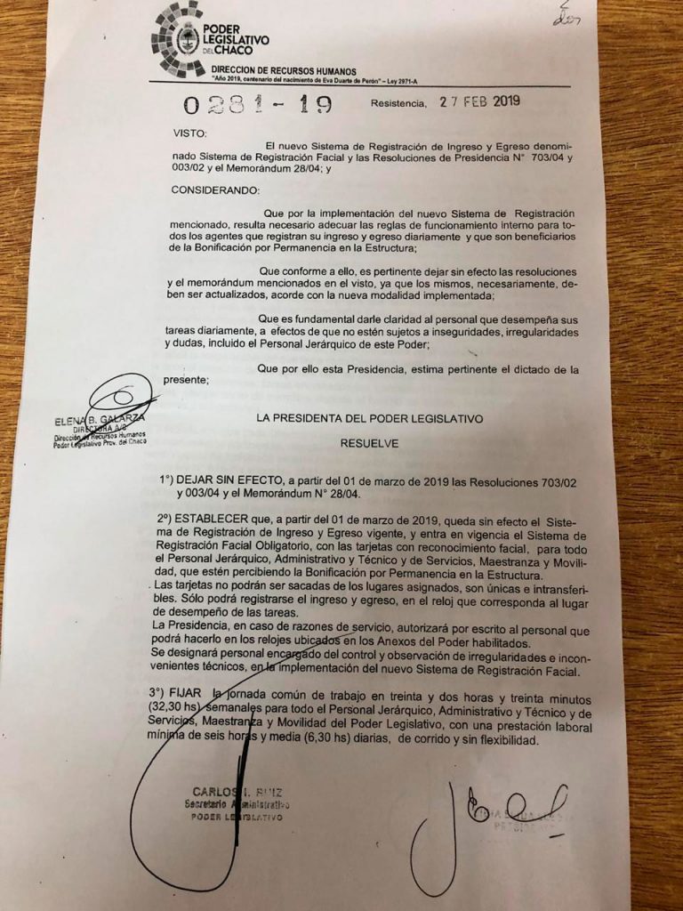 Por resolución de la presidente de la Cámara de Diputados del Chaco, Elida Cuesta, a partir de este viernes 1 de marzo se implementará el reloj lector de reconocimiento facial en todas las dependencias del Poder Legislativo.