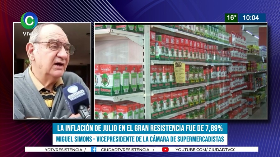 El vicepresidente de la Cámara de Supermercados del Chaco, Miguel Simons, dialogó con CIUDAD TV luego de que se dieran a conocer los últimos índices inflacionarios que marcaron un 7,8% de incremento, 3% más respecto del mes de junio de 2022. Habló de “una alta inflación” sumada a “una caída muy grande del poder adquisitivo” y su correspondiente “merma en las ventas”.
