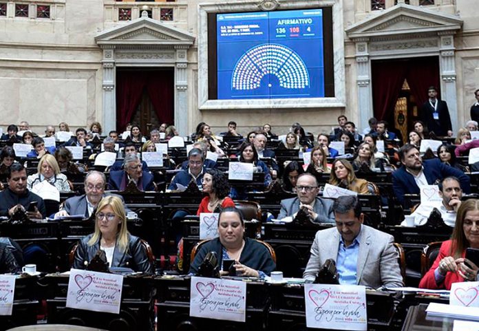 En la votación en general, la iniciativa sumó 129 votos a favor, ya que al FDT se sumaron los respaldos de Provincias Unidas, Interbloque Federal, Movimiento Popular Neuquino; 100 en contra, en su mayoría de Juntos por el Cambio; 18 abstenciones y nueve ausencias.