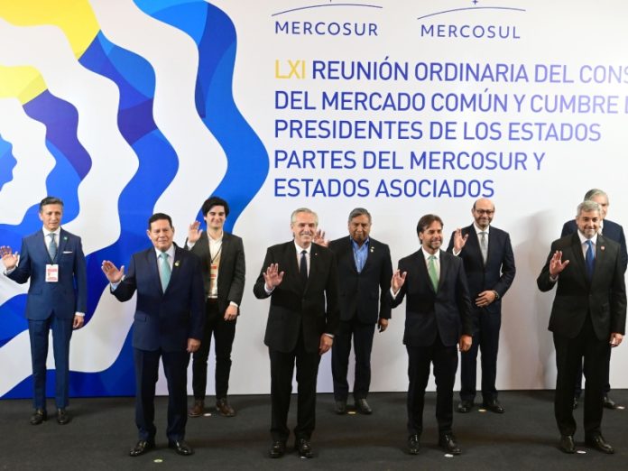 Ante la atenta mirada de Lacalle Pou, del mandatario paraguayo, Mario Abdo, y del vicepresidente brasileño, Hamilton Mourao, Fernández dijo que nadie quiere más que él un acuerdo con la Unión Europea que, pero aclaró que se necesita “un acuerdo digno”.
