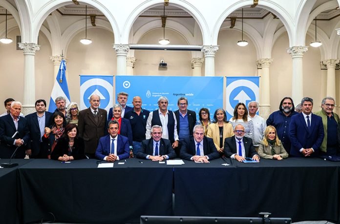 “Es una gran alegría que podamos cerrar este acuerdo tantos días antes de que comienzan las clases. Eso es dar tranquilidad a los docentes, que la merecen, y a las familias argentinas que saben que sus hijos e hijas irán al colegio normalmente”, expresó el mandatario, al tiempo que indicó: “Quería estar presente para ratificar mi compromiso con la educación pública, mi compromiso con cada docente”.