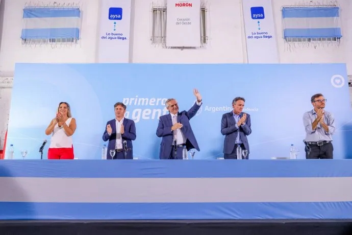El presidente, Alberto Fernández, inauguró el nuevo Colector Cloacal Morón Sur y las redes secundarias que permitirán que la cobertura de desagües cloacales llegue al 100 por ciento de la población de ese municipio bonaerense. Acompañado por el gobernador de la provincia de Buenos Aires, Axel Kicillof, el ministro de Obras Públicas, Gabriel Katopodis, la titular de Agua y Saneamientos Argentinos (AySA), Malena Galmarini, y el intendente de Morón, Lucas Ghi, el mandatario convocó a que “no se altere el movimiento y el sentido político que le hemos dado a la Argentina”.