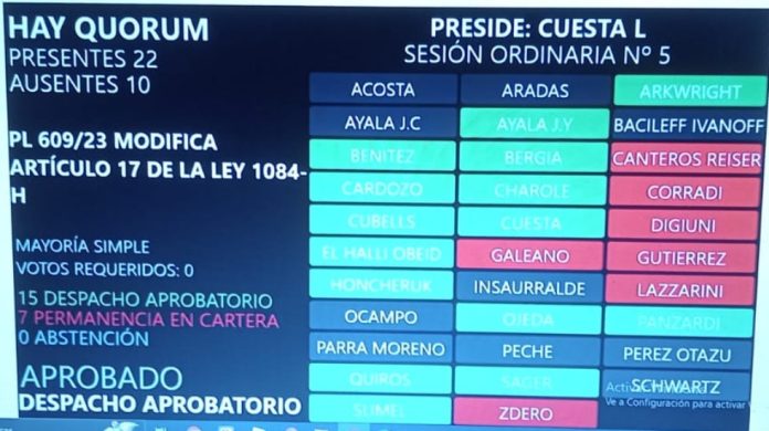 En dos oportunidades, la diputada justicialista Claudia Panzardi, solicitó al cuerpo la alteración del orden del día para abordar el proyecto de su autoría que finalmente se sancionó, con la abstención de los diputados radicales.