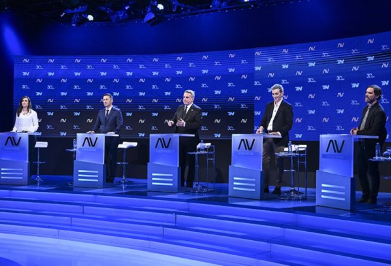 Agustín Rossi (Unión por la Patria), Luis Petri (Juntos por el Cambio), Victoria Villarruel (La Libertad Avanza), Florencio Randazzo (Hacemos por nuestro país) y Nicolás del Caño (Frente de Izquierda) -los compañeros de fórmula de Sergio Massa, Patricia Bullrich, Javier Milei, Juan Schiaretti y Myriam Bregman, respectivamente- protagonizaron un caliente intercambio bajo la conducción de los periodistas Marcelo Bonelli y Edgardo Alfano.