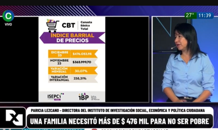 La representante del ISEPCi en la provincia, Patricia Lezcano, dejó en claro que “la inflación acumulada en el año, en particular en el mes de diciembre, y como consecuencia de todas las medidas que se han dado, la devaluación de más del cien por ciento, la liberación de los precios, sin dudas que impactó y muy fuerte en el bolsillo de las familias”.