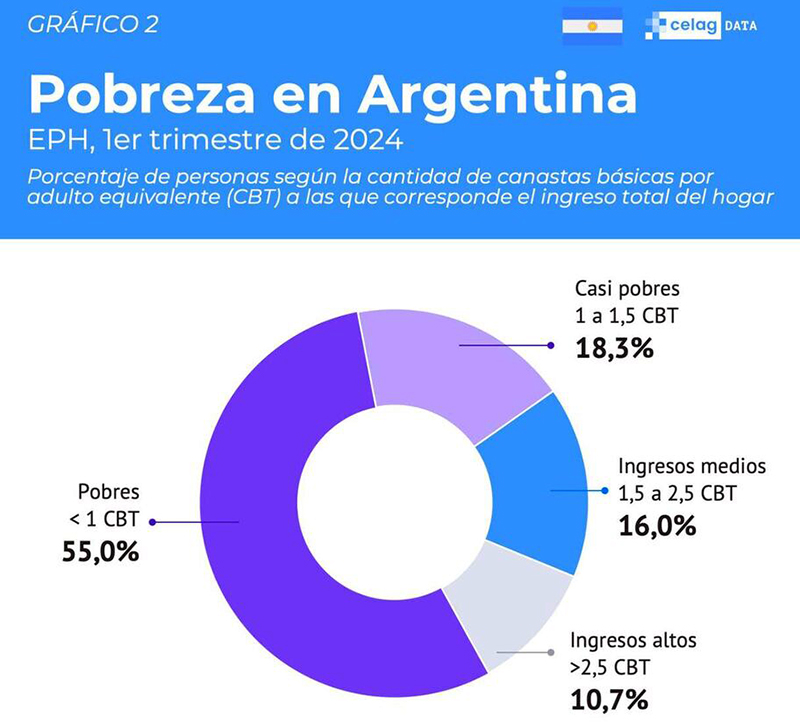 Hay muchas cifras que corroboran este ‘Mal Vivir’ en estos ocho meses de gobierno de Milei. Y todas coinciden en lo mismo: la clase media apenas existe y la clase pobre es la mayoritaria.