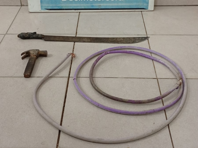 A su arribo demoraron a un hombre de 41 años que había dañado el tendido eléctrico con la intención de llevarse cables, pero no logró su cometido gracias al accionar de los agentes. En su poder secuestraron un machete, un martillo y 13 metros de cable.