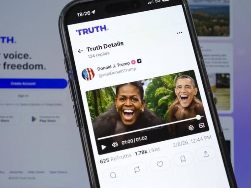 Al final de un video de poco más de un minuto publicado en la plataforma Truth Social de Trump, los Obama aparecen alrededor de un segundo con sus rostros sobrepuestos en cuerpos de monos, con unas palmeras de fondo. La canción “The Lion Sleeps Tonight” suena de fondo cuando aparecen los Obama.