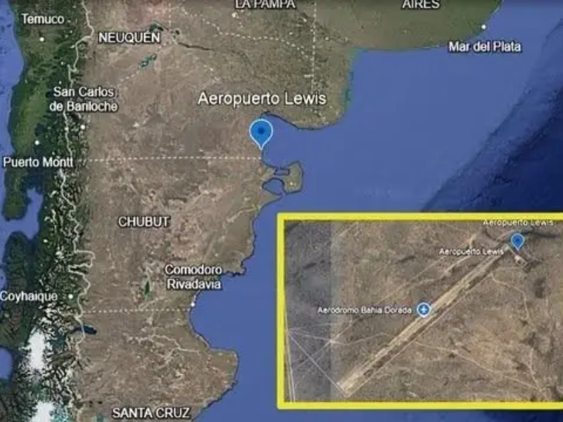 La pista se encuentra a solo dos horas de vuelo de las Islas Malvinas, lo que genera dudas sobre la seguridad y la soberanía nacional en un área sensible. Diversos medios patagónicos señalaron que el aeropuerto fue construido por Lewis hace más de una década y que, durante años, su existencia permaneció en un estado de mutismo oficial.