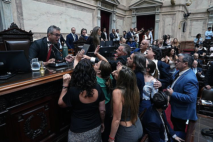 Pasadas las 14 horas de este jueves, legisladores de las bancadas oficialistas y aliados consiguieron el quorum para comenzar la sesión en la Cámara Baja para debatir la reforma laboral. Desde el mediodía, miles de manifestantes comenzaron a poblar Plaza Congreso para seguir de cerca el debate en el recinto. El Gobierno confía en que tiene los votos para aprobar la esclavitud laboral. El FMI manifestó su apoyo al proyecto.