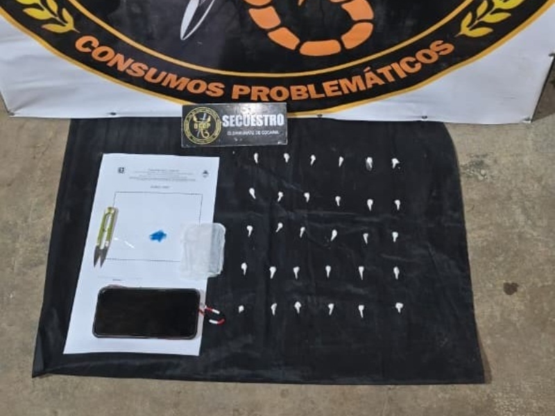 Este viernes por la mañana, personal de la División Operaciones Drogas Interior llevó adelante un allanamiento que culminó con el secuestro de 30 envoltorios con cocaína con un peso total de 6 gramos, un teléfono celular y otros elementos de interés.