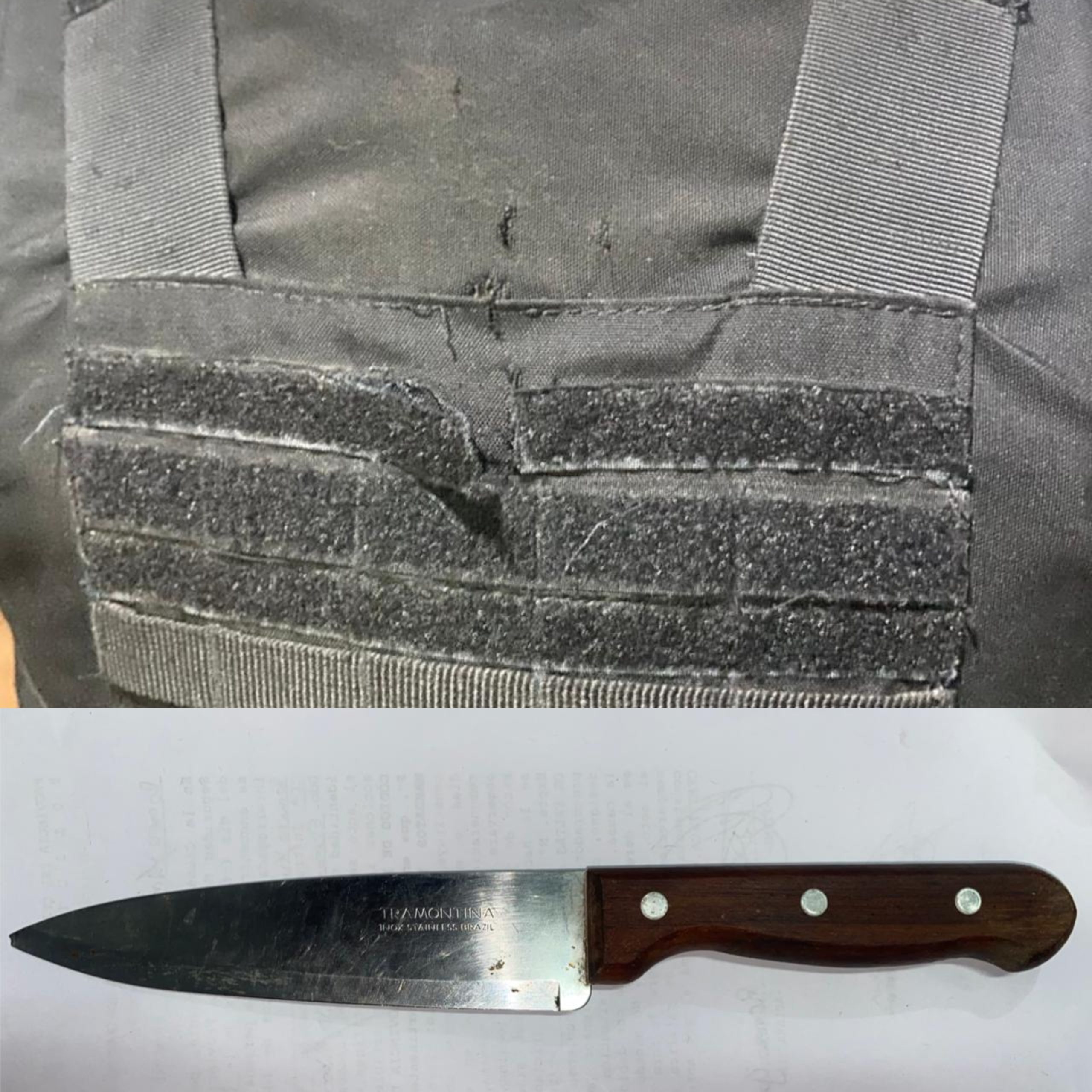 El impacto dio en el chaleco balístico del efectivo, que salvó su integridad física. Tras un disparo disuasorio con cartuchería estruendo/antidisturbios para hacer cesar la agresión, el sujeto huyó por los techos de viviendas linderas. Pese a que un grupo de vecinos intentó entorpecer el procedimiento con el arrojo de objetos a los móviles, la policía logró el secuestro del cuchillo utilizado en el ataque.