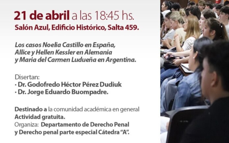 Organizado por el Departamento de Derecho Penal y Cátedra “A” de Derecho Penal Parte Especial, la actividad será de entrada libre y gratuita, y está destinado a la comunidad académica en general y público interesado en la temática.